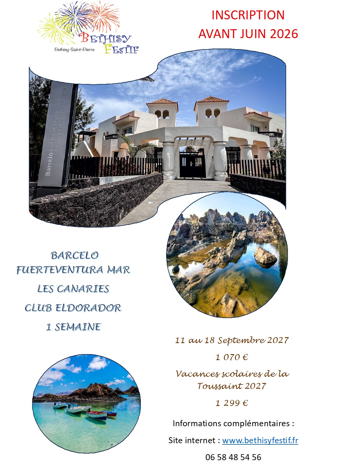 SEPTEMBRE 2027 ILES CANARIES FUERTEVENTURA FORMULE CLUB ALL INCLUSIVE