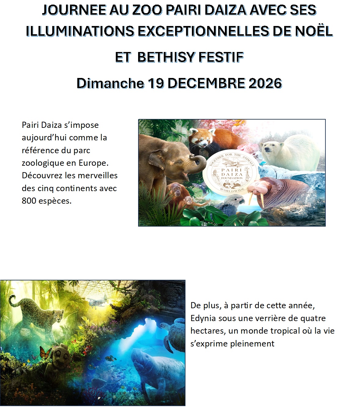 SAMEDI 19 DECEMBRE 2026 ZOO PAIRI DAIZA EN BELGIQUE