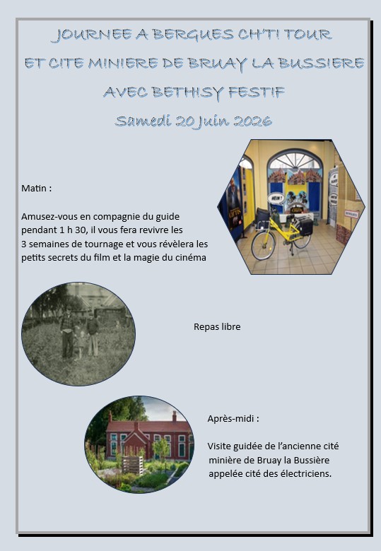 Samedi 20 Juin 2026 Le Ch’Ti Tour à Bergues et Visite de la cité minière de Bruay la Bussière